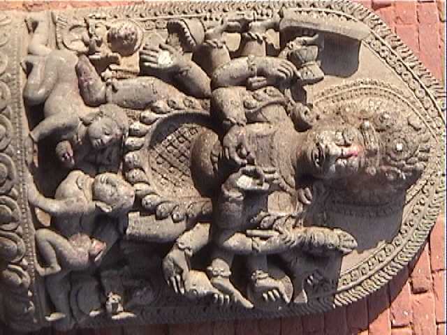 carvings of Buddhas, child-eating demons and tantric sex scenes mixing with the