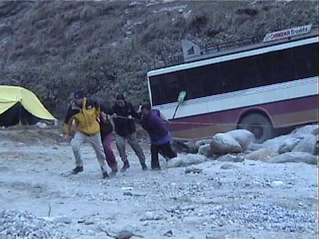 in to pull the bus backwards out of a hole. Most of